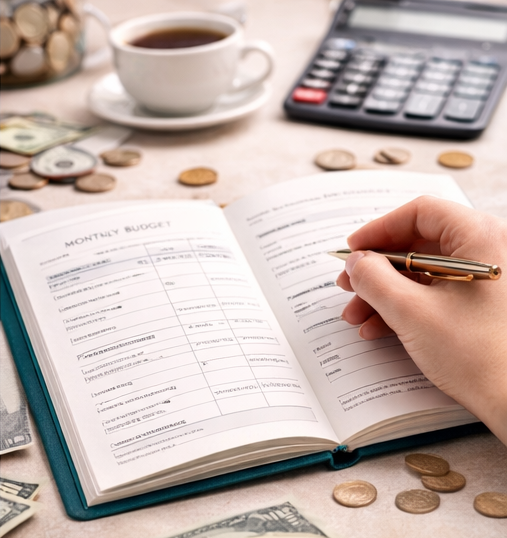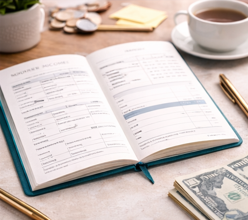 - Monthly budget planning pages to outline income, fixed expenses, variable spending, and savings goals